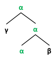 - all syntactic structure is binary branching (as opposed to n-ary branching)