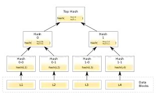 The main difference from a hash list is that one branch of the hash tree can be downloaded at a time and the integrity of each branch can be checked immediately, even though the whole tree is not available yet. For example, in the picture, the integrity of data block L2 can be verified immediately if the tree already contains hash 0-0 and hash 1 by hashing the data block and iteratively combining the result with hash 0-0 and then hash 1 and finally comparing the result with the top hash. Similarly, the integrity of data block L3 can be verified if the tree already has hash 1-1 and hash 0. This can be an advantage since it is efficient to split files up in very small data blocks so that only small blocks have to be re-downloaded if they get damaged. If the hashed file is big, such a hash list or hash chain becomes fairly big. But if it is a tree, one small branch can be downloaded quickly, the integrity of the branch can be checked, and then the downloading of data blocks can start.