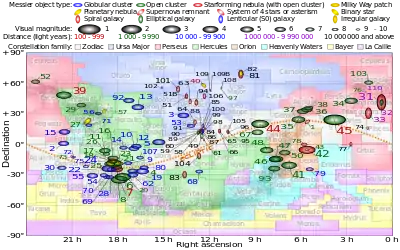 Less complete Messier marathons can be undertaken at other times of the year, with the actual quantity of Messier objects seen depending upon season and location. In particular, there is a short period around the autumnal equinox when most of the objects can be seen.[1]
