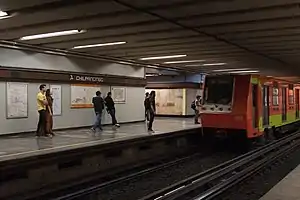 Chilpancingo (Spanish: Estación Chilpancingo) is an underground metro station along Line 9 of the Mexico City Metro.[2][3] It is located in the Cuauhtémoc borough of Mexico City. It is very close to Metrobús station of the same name.[4] In 2019, the station had an average ridership of 49,122 passengers per day, making it the busiest station in Line 9 and the 17th busiest station in the network.[5]