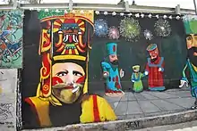Mural of Chinelos dancers with masks in San Andrés Totoltepec, Tlalpan, Mexico City