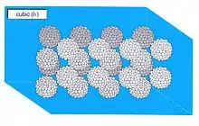 A micellar cubic phase is a lyotropic liquid crystal phase formed when the concentration of micelles dispersed in a solvent (usually water) is sufficiently high that they are forced to pack into a structure having a long-ranged positional (translational) order. For example, spherical micelles a cubic packing of a body-centered cubic lattice. Normal topology micellar cubic phases, denoted by the symbol I1, are the first lyotropic liquid crystalline phases that are formed by type I amphiphiles. The amphiphiles' hydrocarbon tails are contained on the inside of the micelle and hence the polar-apolar interface of the aggregates has a positive mean curvature, by definition (it curves away from the polar phase). The first pure surfactant system found to exhibit three different type I (oil-in-water) micellar cubic phases was observed in the dodecaoxyethylene mono-n-dodecyl ether (C12EO12)/water system.[1]