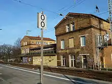 Beginning of the Michendorf–Großbeeren railway line in Michendorf station (2012).