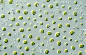 Microalgae or microphytes are microscopic algae invisible to the naked eye. They are phytoplankton typically found in freshwater and marine systems, living in both the water column and sediment.[1] They are unicellular species which exist individually, or in chains or groups. Depending on the species, their sizes can range from a few micrometers (μm) to a few hundred micrometers. Unlike higher plants, microalgae do not have roots, stems, or leaves. They are specially adapted to an environment dominated by viscous forces.