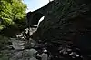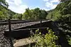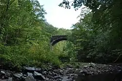The Middlefield–Becket Stone Arch Railroad Bridge District is a historic district extending through parts of the towns of Chester, Middlefield, and Becket, Massachusetts.[2] The district encompasses a 3.7-mile (6.0 km) stretch of railroad right of way in which there are ten bridge crossings, including nine over the west branch of the Westfield River. The bridges were built in four time periods: 1840, 1866, 1912, and 1928. Nine of the ten bridges are stone or concrete masonry work, and one is a truss girder bridge. All are, with only minor exceptions, in excellent and original condition. The bridges were built to carry the Western Railroad through on its run from the Connecticut River to the Hudson River. This section of railroad was the most expensive the company had to build, costing over $1 million in 1840.[3]