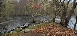 The remainder of the right of way in Billerica is fragmented. The portion between Concord Road and the Concord River had become overgrown with fairly substantial trees, but a portion was recently recleared and paved as a driveway into a new commercial development that is not yet completed. On the north side of the Concord River, a short section now called Old Middlesex Turnpike serves a few blocks in a residential neighborhood, but a gate blocks access to the river. The section between River Street Extension and River Street is substantially overgrown, with the southern end serving as a dirt driveway from River Street into a couple residences. The portion of River Street nearest U.S. Route 3 also follows the original right of way. There are original fragments remaining in the Billerica State Forest, alongside Route 3, and again north and south of Rangeway Road.