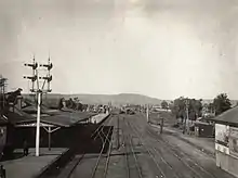 Midland Junction station, May 1927  taken from the Railway Workshops footbridge  looking east towards Greenmount Hill