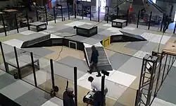The 2016 course included two levels, and gates that opened and closed. This forced teams to work on a strategy to get into the inner circle before scoring in the game.