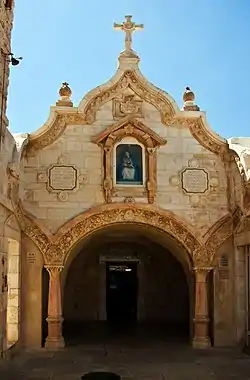 The Chapel of the Milk Grotto of Our Lady (Latin: Crypta lactea; Arabic: مغارةآلسثئ; Hebrew: מערת החלב), also called Grotto of Our Lady or Milk Grotto, is a Catholic chapel in Bethlehem, in the West Bank, erected in 1872.[1][2][3][4] Since Byzantine times, the place has been a center of Christian pilgrimage, maintained since its last erection together with its Marian shrine and monastery by the Custody of the Holy Land of the Order of the Friars Minor of the Catholic Church in Palestine. The Status Quo, a 250-year-old understanding between religious communities, applies to the site.[5][6]