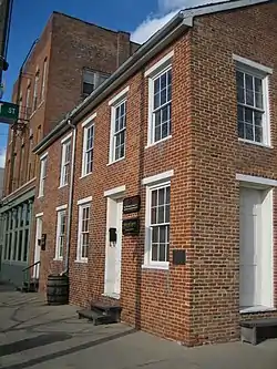 Even before the construction of the Miller–Davis Law Buildings in Bloomington, Illinois, the street corner of Main and Front Streets were a popular political rallying point. Stephen A. Douglas and David Davis debated Congressional elections here in 1840. The Miller–Davis Law Buildings were the second and third brick buildings in Bloomington, completed in 1843. Future Illinois Treasurer James T. Miller, a local businessman and land speculator, financed their construction. James Goodheart, William T. H. Miller and Squire Lawrence were tasked with its construction. They are the oldest buildings in the Bloomington Central Business District and the only examples of non-residential 1840s architecture in McLean County.[2]