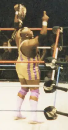 ![]() Mo after winning the WWF World Tag Team Championship with Mabel in 1994. | |