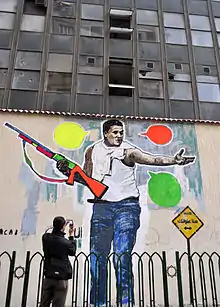 Art activism have had a major influence on the unfolding of the huge political movements that have taken place in Egypt over these years.[3] No art form has represented the enthusiasm and overwhelm of feelings that occurred as a result of Egypt's 2011 revolution as vividly as graffiti. In the beauty of their drawings and bright colours, Some of the graffiti's illustrate a resemblance to the Pharaohs’ graffiti of the past, a major pillar of Egyptian culture and society.[4] Influenced by the rise of graffiti around the globe, Egyptian artists began attempting different styles and sketches, mixing Egyptian-influenced style with famous icons and Arabic calligraphy, as a form of revolt. This artistic rise, both purging and expressing, allowed artists to thrive and create art influenced by the political and social condition of Egypt. Still, danger presents itself, as artists continue to work under oppressive regimes.[5]