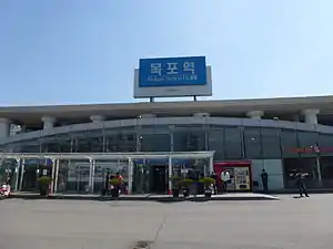 Mokpo station is a station on the Honam Line in Mokpo, South Jeolla Province. It is the westernmost railway station in South Korea. This station is the last stop on the Honam Line. Being located in the southwestern part of the Korean peninsula, it is used by customers who visit Jeju Island, Heuksan Island, and Hong Island in connection with KTX.[1]
