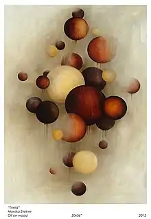 As an abstract artist, Steiner describes her work as an outward expression of her innermost thoughts and feelings, a tangible expression of personal memories, situations, moments and feelings. "I am attracted to spheres because they are nature's most perfect shape - requiring the least amount of structure to enclose the greatest possible volume. I am amazed by their ability to conjure entities as massive as planets or as small as subatomic particles."[5]