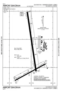 Monroe County Airport (IATA: BMG, ICAO: KBMG, FAA LID: BMG) is a county-owned public-use airport located four nautical miles (7 km) southwest of the central business district of Bloomington, a city in Monroe County, Indiana, United States.[1] Commercial service has been available at different points in the airport's history but as of today and for the future, no scheduled service is available.