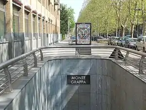Monte Grappa is a Turin Metro station, located in Corso Francia near the intersection between Corso Monte Grappa and Corso Monte Cucco. The station was opened on 4 February 2006 as part of the inaugural section of Turin Metro, between Fermi and XVIII Dicembre.[1]