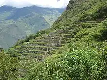 Monte Negro used a terracing system called lama-bordo.[3] This farming technology is similar to cross-channel terraces as a labor-intensive system that supported a strong centralized authority.[4] The terrace walls are made of stone and rebuilt over time. The process of rebuilding left redeposit soil several meters deep good for crops.[3] The terrace systems go along down the mountainside and down into the valley floor 500 m down. The main crop being grown on these terraces was predominately maize. The height of the terraces restricted growing season due to frost.[5]
