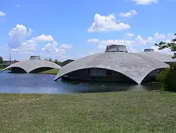 The school building was completed around 1970. It is an unusual structure situated on a man-made lake and featuring concrete shell construction.[3][4] Major renovations and an expansion were begun in 2010 that would maintain and enhance the forty-year-old pod structures.[5] The project is funded with an interest free bond administered under the American Recovery and Reinvestment Act of 2009.[6]