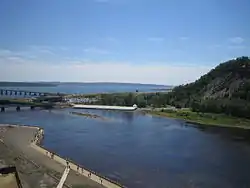 - 2.5 kilometres (1.6 mi) to the east, forming a large S, crossing the Barrage des Marches Naturelles and passing under the bridge of the route 360, until Montmorency Falls;