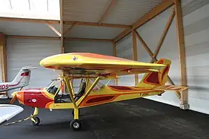 The aircraft is made with a welded steel tubing fuselage. The wings can be constructed with either an aluminum sheet or wooden structure, with its flying surfaces covered in doped aircraft fabric in both cases. The wooden wings include leading edge slots. Its 9.86 m (32.3 ft) span wing has an area of 13.4 m2 (144 sq ft) and is supported by "V" struts and jury struts. The standard engine recommended is the 80 hp (60 kW) Rotax 912UL four-stroke powerplant. The World Directory of Leisure Aviation 2011-12 states that landing gear uses sprung aluminium suspension for all three wheels and that the nose wheel is freely castering and steering is accomplished with differential braking.[1] Later models have sprung aluminium suspension for the main wheels and a rudder pedal-controlled steerable nose wheel.