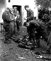 Throughout the remainder of the week, the Battle of Ortona degenerated into a small-scale version of the Battle of Stalingrad, with vicious house-to-house fighting through the narrow streets and debris of Ortona.[69] Over the course of the battle, Canadian forces developed innovative "mouse-holing" tactics, moving between houses to avoid German sniper fire in the open streets.[70] German counterattacks on 24 and 26 December caused significant casualties to Canadian forces in the town.[69] In danger of being outflanked by Allied advances west of Ortona, the 1st Parachute Regiment abandoned the town the following day, leaving Ortona to Canadian forces. Canadian casualties in the fighting for the town approached 650 killed or wounded.[71]
