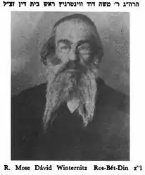 Moshe Dovid Winternitz (1855–1944) was the Head of the Beth din Rabbinical Court in Satmar, Hungary (now Satu Mare, Romania). This position was second to the Rabbi of the city. He is considered to be one of the greatest scholars of his time. People from around the globe would send him Halachic queries.