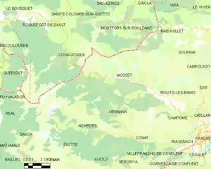 Map of Mosset and its surrounding communes