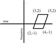 The following examples assume time in the horizontal axis versus frequency in the vertical axis. As a coincident, the following transformations happen to have the motion properties in the time-frequency distribution.