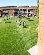 The Mt. Spokane High School Band comprises five ensembles, including two concert band ensembles, one percussion ensemble, and two jazz bands.[11] Since its inception in 1997, the band program has received dozens of awards at local, regional, national, and international levels.[12] A majority of the funding for the program comes from the Mt. Spokane Bandstand, which is a parent-run organization that raises funds to provide uniforms, instruments, equipment, and travel expenses for the program.[13] An annual craft fair is the main fundraiser for the program and includes a raffle for baskets that are designed by the Freshman, Sophomore, Junior, and Senior classes.[14]