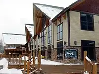 The first ski runs date as far back as 1926, with the opening of the ski lodge in 1929.[2] Rope tows were installed in 1942 and the mountain was the second in Canada to install a chairlift in 1948 (Red Mountain Resort was the first, in 1947), with a vertical drop of 1,400 feet (425 m).[3] Norquay offered three regular big vertical daily awards in the form of a pin for 25,000 feet for a bronze, 30,000 for silver and 35,000 for a gold, that regulars and staffers have collected over the years.[4] In 1978–79 they also had 50 copies of the platinum 50,000 feet as a celebration of 50 years of the clubhouse at Norquay. Since 1978 Ski Norquay has partnered with Ski Banff, Lake Louise, Sunshine to promote its activities. This created a joined up tri-area lift pass system, which includes shuttle bus transport to and from the resort.[5]