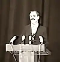 On 16 July 1979, President Saddam Hussein announced that his government had foiled a conspiracy between members of the Iraqi Ba'ath party and the Syrian Ba'athist government against the Iraqi Ba'athist government. At an emergency meeting at al-Khild Hall in Baghdad, Saddam ordered Mashhadi to confess that he had conspired against the Iraqi government.[1] Mashhadi identified 68 co-conspirators, who were all led out of the hall and 21 of whom were executed afterwards in August.[2] [3]