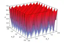 A 2-D modulation comprises a space domain that has 2 independent variables e.g. x(n1,n2) with a corresponding frequency domain that also has 2 independent variables X(ω1, ω2).