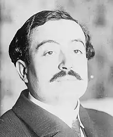 The murderer was Raoul Villain, a 29-year-old from Rémois, an archaeology student at the École du Louvre, and above all a member of the Ligue des jeunes amis de l'Alsace-Lorraine, a nationalist, pro-war student group close to Action Française.[13] He was arrested and declared that he had acted alone to "suppress an enemy of his country". This theory of an isolated act was repeated unchanged in the indictment drawn up on October 22, 1915.[13] He is described as an unassuming, calm and pious character, blond-haired, blue-eyed and youthful in appearance. Without ever having seen Jaurès, he gradually took it into his head to kill the traitor, the German.[14] Doubtless convinced of the necessity of his action since the previous December, he matured his deed throughout July, bought a Smith & Wesson revolver, practiced shooting, wrote a few incoherent letters, located the socialist leader's home, his newspaper, the café where he was a regular.[14]