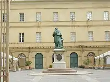 The Fesch museum is located in Ajaccio, the birthplace of its founder, the cardinal Joseph Fesch.[2] It is housed in the 19th-century Palais Fesch on Rue Cardinal Fesch.[3] The Palais Fesch also houses a college of that name, which contains a large collection of pictures, though most of them are copies. There is also a library of 30,000 volumes, and a collection of Corsican minerals. The courtyard contains a bronze statue of Cardinal Fesch. In the right wing of the palace is the Chapelle Fesch, built in 1855, containing the tombs of Letizia Ramolino, mother of Napoleon, and of Cardinal Fesch.[4] The Bibliothèque Municipale, an adjacent building, contains rare antique books.[5] It was completed in 1837.