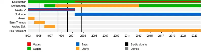 - Secthdamon (Tony Ingebrigtsen) - guitars, backing vocals (1996-1997, 2013–present); drums (1997–2013)