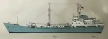 In 1972, the government bought a damaged but younger German freighter, converted its once refrigerated holds into laboratories and scientists’ accommodation, installed a high-resolution seismic sounder/profilers into its hull, and named her Tangaroa (a prior ship than the present Tangaroa).[8] A punch-tape controlled transit satellite navigation system was installed, but position fixes could be many hours apart. She undertook 155 cruises, many to the tropics, until she was damaged in a storm in 1984 and sold for scrap.[3]