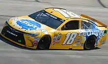 On November 10, 2011, it was reported that M&M's, the primary sponsor for Busch's Sprint Cup team, refused to sponsor the 18 for the last few races as a result of Busch's behavior in Texas.[114] Aric Almirola was briefly considered by Joe Gibbs Racing to replace Busch for the remainder of the year,[115] while it was decided by the team to allow Busch to drive in the final two races of the season with Interstate Batteries sponsorship,[116] Busch was replaced in the team's Nationwide Series car for the final race of the year at Homestead-Miami Speedway by the request of the team's sponsor, Z-Line Designs. Busch was subsequently replaced by Denny Hamlin as had occurred previously at Texas.[117]