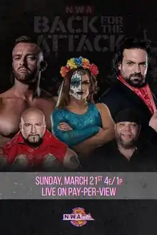 Back For The Attack was a professional wrestling pay-per-view (PPV) event promoted by the National Wrestling Alliance (NWA). The event took place on March 21, 2021, in Atlanta, Georgia, at GPB Studios, and aired exclusively on FITE TV.[1] This was the first live event produced by the NWA since Hard Times on January 24, 2020, as the promotion halted operations due to the COVID-19 pandemic. The event was in memory of NWA wrestler Joseph "Jocephus" Hudson (who also portrayed The Question Mark), who died February 24, 2021.[2]