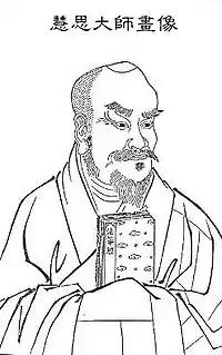 Nanyue Huisi (Chinese: 南嶽慧思, 515-577),[note 1] was an eminent Chinese Buddhist monk, traditionally regarded as the third patriarch of the Tiantai school.[note 2][7] According to Sasaki, Huisi "was the leading authority on the Lotus Sutra of his time."[8]