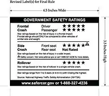 To improve the dissemination of NCAP ratings, and as a result of the Safe, Accountable, Flexible, Efficient Transportation Equity Act: A Legacy for Users (SAFETEA–LU), the agency has issued a Final Rule requiring manufacturers to place NCAP star ratings on the Monroney sticker (automobile price sticker). The rule had a September 1, 2007 compliance date.[45]