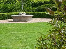 The SANDS Garden is for bereaved parents. At the centre of the garden is a sculpture of the SANDS tear drop logo which was created by John Roberts and the Portland Sculpture Trust to encourage people to sit and touch the central carved figure of the baby.