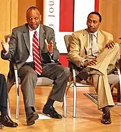![]() New York Times columnist William C. Rhoden (left) and former ESPN contributor Stephen A. Smith discuss diversity in the newsroom at a NSJC event in Indianapolis on 09/14/09. | |