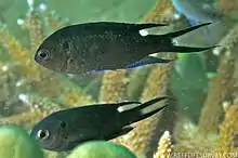 - ↑ Froese, Rainer; Pauly, Daniel (eds.) (2015). "Neopomacentrus cyanomos" in FishBase. 2 2015 version.