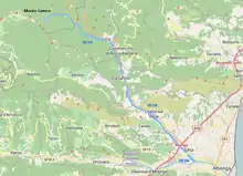 The creek is formed in Piemonte (comune of Garessio) near the Monte Galero,[1] in the Ligurian Prealps. It then flows southeast and after a few kilometres it enters in Liguria crossing the territories of Erli, Castelvecchio di Rocca Barbena and Zuccarello. A little upstream of Cisano sul Neva it gets from the right hand its main tributary, the Pennavaira. Close to its mouth the Neva is crossed by State highway Aurelia bis and Autostrada dei Fiori. In Leca (comune of Albenga), joining the Arroscia, it forms the Centa, one of the most relevant rivers of Liguria.