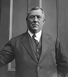 On Storey's death in October 1921, James Dooley became leader of the party and premier. His government was defeated on the floor of the House on 13 December 1921, but new Premier George Fuller lost a vote within seven hours of his appointment, and Dooley regained power. He lost the 1922 election to Fuller in a highly sectarian election campaign.[6] As the result of a dispute with a party executive, dominated by the Australian Workers' Union, Dooley was expelled from the party in February 1923 and replaced by Greg McGirr as leader, but the Federal Executive intervened and appointed Bill Dunn as an interim leader until Jack Lang was elected by the caucus,[7] with the support of more radical unions, most prominently Albert Willis and his Australian Coal and Shale Employees' Federation.[5]