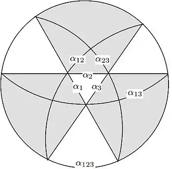In the picture the white chamber, e.g with basis . Clearly, the Dynkin diagram of this type of chamber is a simply-laced triangle,