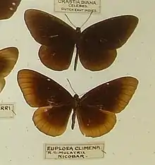- ↑ Bingham, C.T. (1905). The Fauna of British India, Including Ceylon and Burma Butterflies. Vol. 1 (1st ed.). London: Taylor and Francis, Ltd.. (under Euploea climena simulatrix)