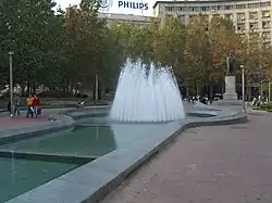 In 2017, city government announced that, within the scopes of the reconstruction of the square, it will demolish the fountain and build a new, smaller one, with the sprinklers on the ground level. Demolition of "one of the most recognizable city fountains" prompted a public opposition to the project.[5] Chief city urbanist Marko Stojčič stated in July 2019 that the fountain is not envisioned by the new project at all, adding that he will "insist to keep water in some form". In August 2019, deputy mayor Andreja Mladenović said that the fountain will not be removed, not specifying if the old one will be kept or the new one will be built instead.[24] As the opposition among the citizens continued, Stojčić stated that the new fountain will be similar to the existing one "to the extreme degree". Political opposition in the city hall, threatened to physically prevent the works in the square if the fountain is to be removed.[25][26]