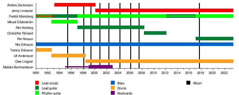- Fredrik Mannberg – guitars (1990–present), vocals (1990–1993)