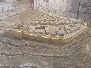 ![]() A possible reconstruction of medieval Medina (model by Richard Azzopardi and Stephen C. Spiteri, displayed at the Fortifications Interpretation Centre in Valletta) | |||||||